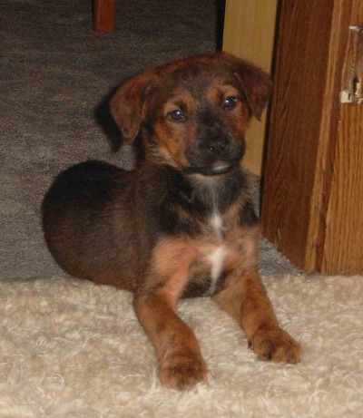 Jule an ihrem ersten Tag bei uns im Alter von 8 Wochen
