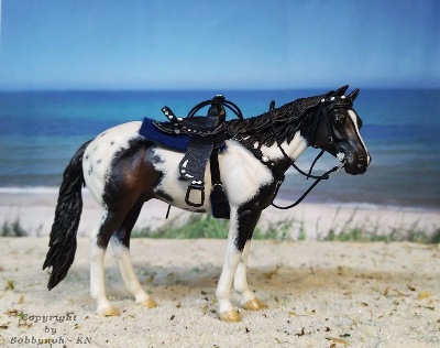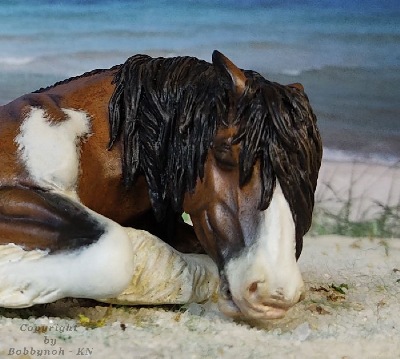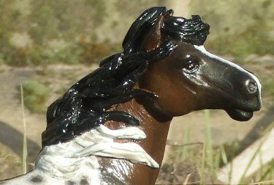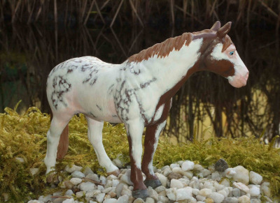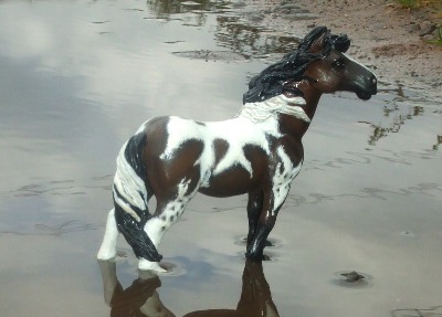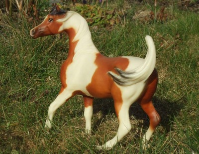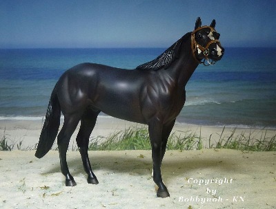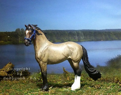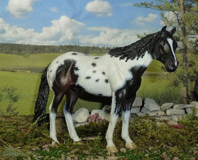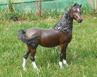 Das ist Thunder mein 3ter Breyer Cust, ihn habe ich als Custbody gekauft, die Gußnähte ich habe entfernt und die Ohren ausgebohrt, dann wurde er mit Arcrylfarben bemalt und mit Pastellkreide schattiert.(er ist in meinem Besitz)