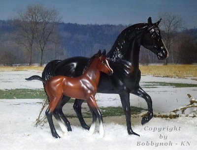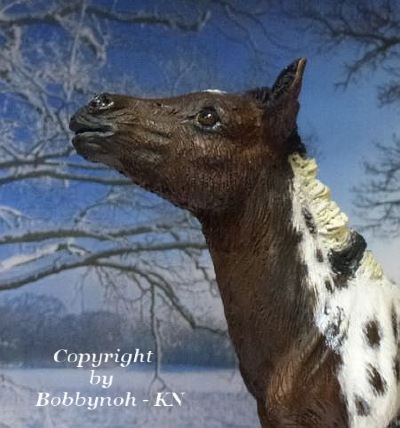 Das ist Happy, das Fohlen wurde von Uschi Apelt unter dem Namen Hope modelliert, sie hat es als Resin gießen lassen, wurde dann von mir dann bemalt.