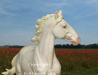 Das ist der Cremello Snowdancer(2008), der sollte zuerst verkauft werden, aber dann habe ich mich in ihn verliebt, aus dem Wallach wurde ein Hengst und die Schleichschrift unten auf dem Bauch habe ich auch entfernt. Er bekommt jetzt eine Stute und ein Fohlen, dann hat er eine kleine Cremello Familie, wenn die fertig ist gibt es neue Fotos.