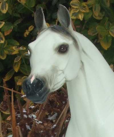 Der graue Araber Hengst - er hatte das eine Ohr nur noch halb, es war mein allererster cust, die Reparatur am Ohr.