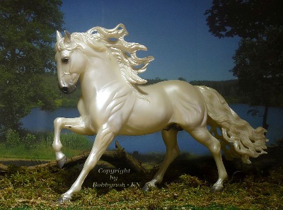 Breyer SM Vollblut Cremello, repaint von Sue Bajtit